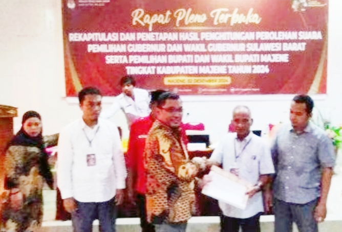 “Jadi hasil rekapitulasi ini sudah ditetapkan, hasil pemilihan Bupati dan Wakil Bupati Kabupaten Majene,” jelas Munawir.