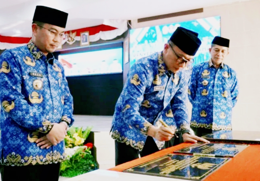 Juga, dilakukan pula penandatanganan prasasti sebagai tanda peresmian beberapa gedung dan ruas jalan yang telah selesai diperbaiki.