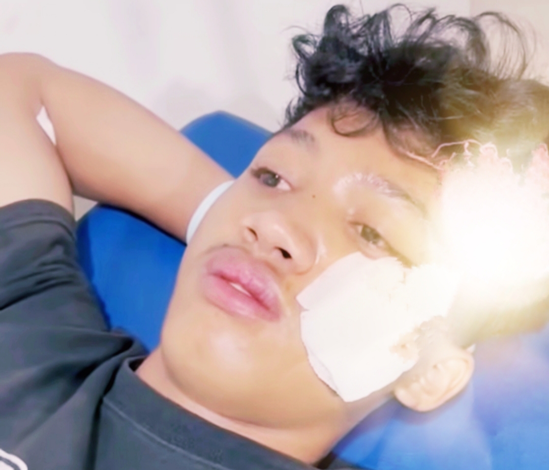 Mirisnya, korban terkena busur dan tertancap dibagian pipi sebelah kiri.