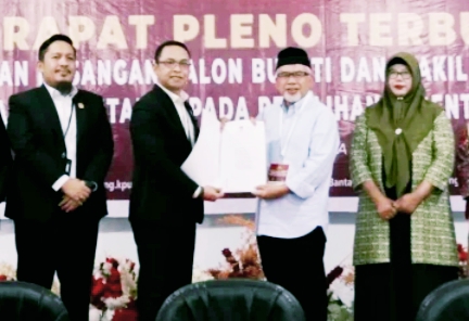 Dipaparkan, penetapan ini berdasarkan Peraturan Komisi Pemilihan Umum Nomor 18 Tahun 2024 tentang Rekapitulasi Hasil Penghitungan Perolehan Suara dan Penetapan Hasil Pemilihan Bupati dan Wakil Bupati terpilih secara serentak se-Indonesia dan Menindaklanjuti Surat Komisi Pemilihan Umum Republik Indonesia Nomor 24/PL.02.7- SD/06/2025.