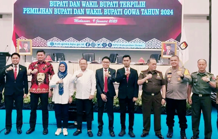 Rapat Pleno yang digelar Komisi Pemilihan Umum (KPU) Kabupaten Gowa Sulsel, secara resmi menetapkan Pasangan Calon Sitti Husniah Talenrang-Darmawangsyah Muin (Hati Damai) sebagai Bupati dan Wabup terpilih Kabupaten Gowa, dihelat di Hotel Claro Makassar, Kamis 9 Januari 2025.