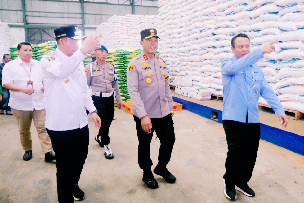 Penjabat Gubernur dan Kapolda, secara langsung meninjau gudang penyimpanan Bulog untuk memastikan bahwa stok pangan, terutama beras, dalam kondisi aman dan mencukupi kebutuhan masyarakat.