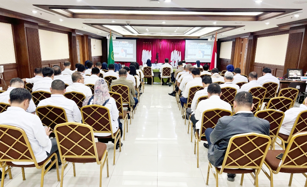 Segenap jajaran Pengadilan Negeri (PN) Jakarta Pusat Kelas 1A Khusus, mengikuti arahan pembinaan oleh Dirjen Badan Perdilan Umum (Badilum) Mahkamah Agung RI H.Bambang Miyanto, SH, MH, melalui zoom meeting (virtual) berlangsung di Ruang Auditoriun LT.7 PN.Jakarta Pusat, Senin 20 Januari 2025.