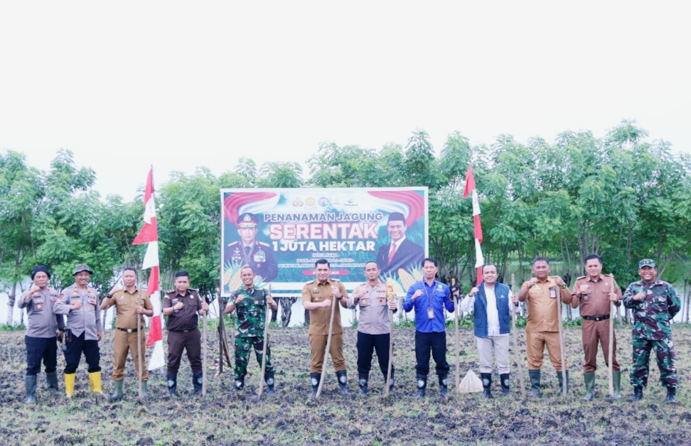 Penanaman jagung serentak 1 juta hektar tersebut di saksikan langsung oleh Mentri Pertanian RI, Amran Sulaiman bersama Kapolri Jenderal Pol. Listyo Sigit Prabowo, melalui via zoom.