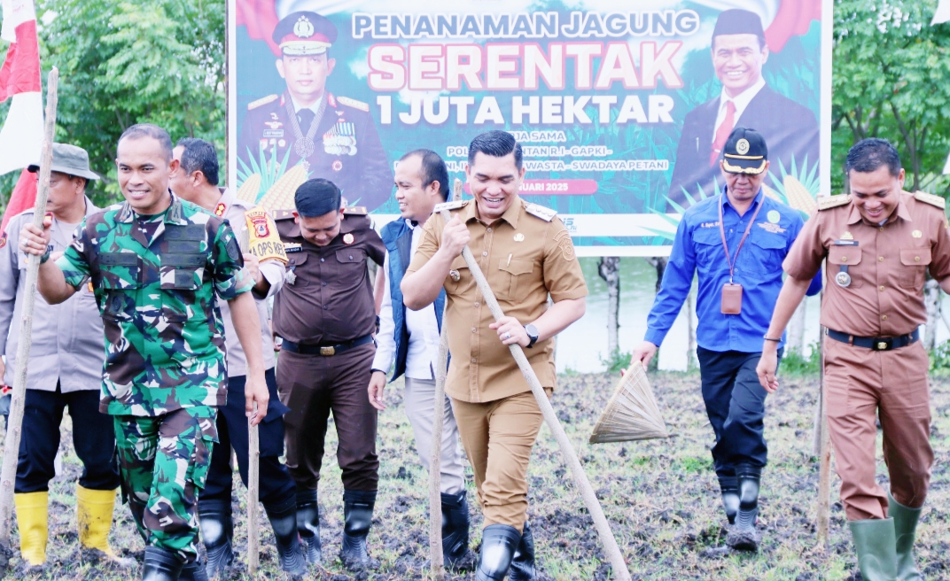 Pj. Bupati Takalar Dr.H.Muhammad Hasbi bersama Forkopimda Takalar melakukan penanaman jagung serentak 1 juta hektar di Dusun Pandala Desa Laikang Kecamatan Mangarabombang (Marbo), Selasa, 21 Januari 2025.