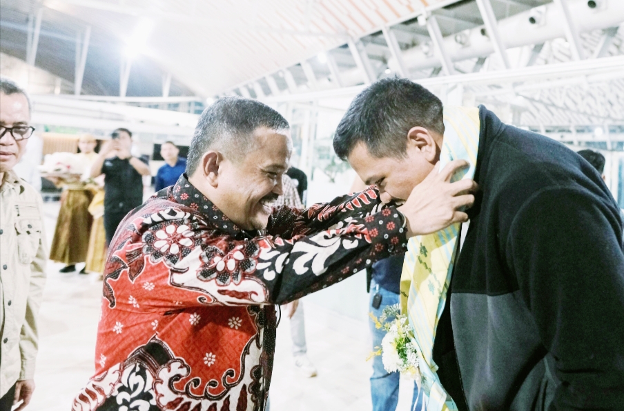 Keduanya, disambut langsung pimpinan Forum Koordinasi Pimpinan Daerah (Forkopimda) dan mendapatkan pengalungan kain sutra.