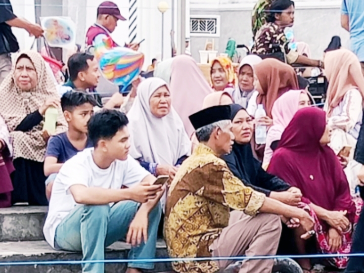 Membludaknya pengantar di area Masjid bahkan meluber hingga ke ruas jalan, tiada lain ingin menyaksikan langsung prosesi pelepasan JCH menuju Asrama Haji Sudiang.