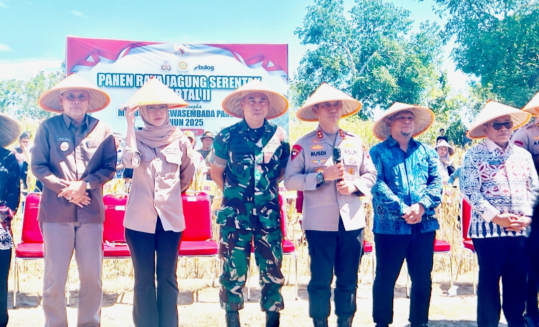 Panen dipimpin Presiden Prabowo Subianto secara virtual didampingi Menteri Pertanian Amran Sulaiman, Kapolri Jenderal Listyo Sigit Prabowo, dan Panglima TNI Agus Subianto.