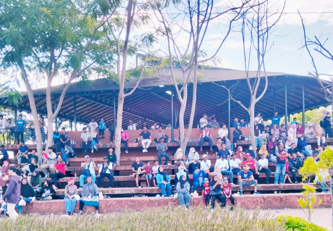 Lomba layangan dari berbagai bentuk dan desain unik itu, menyedot ratusan penonton, yang lagi duduk santai di atas tribun menyaksikan layang-layang ‘jagoannya’ terbang meliuk-liuk di angkasa.