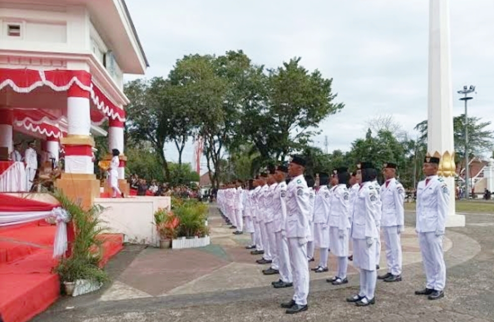 Bupati Bone Andi Asman Sulaiman (AAS) memimpin upacara peringatan 80 Tahun Kemerdekaan RI, berlangsung di Lapangan Merdeka Watampone, Ahad 17 Agustus 2025.