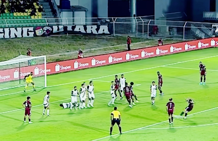 Pada menit ke-56, rekrutan baru PSM Savio Roberto sukses mengeksekusi tendangan bebas yang sangat keras, skor 1-0.