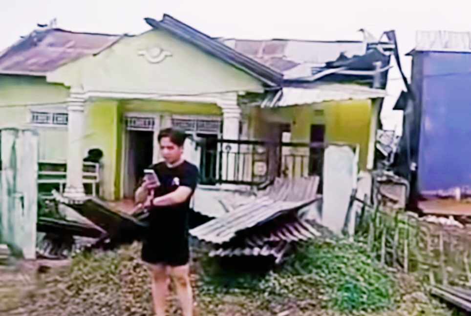 Warga panik dan ketakutan melihat atap rumahnya terangkat diamuk dahsyatnya angin dan menyisakan puing-puing rangka balok yang berserakan.