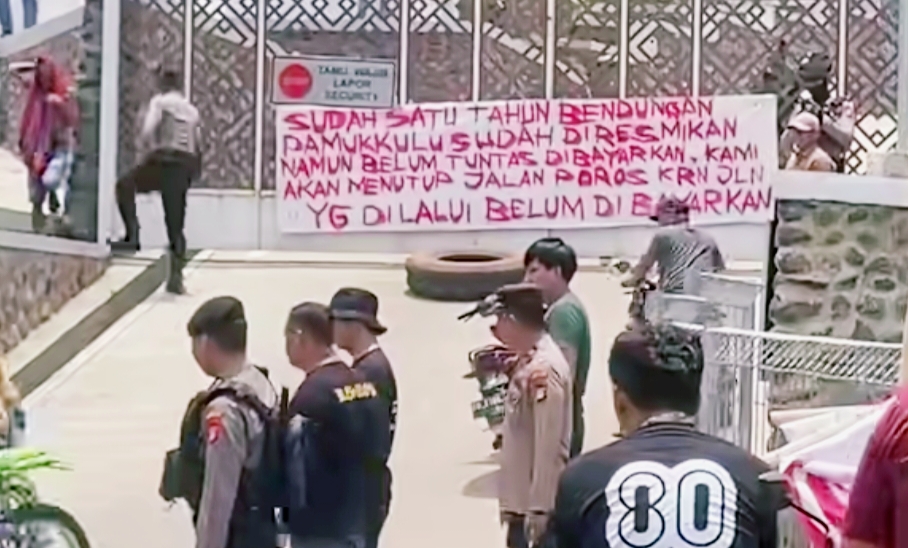 Massa yang tergabung dalam Aliansi Masyarakat Dampang Ko’mara tersebut, membentangkan spanduk bernada ancaman akan menutup akses jalan utama bendungan jika hak-hak mereka tidak segera dipenuhi.