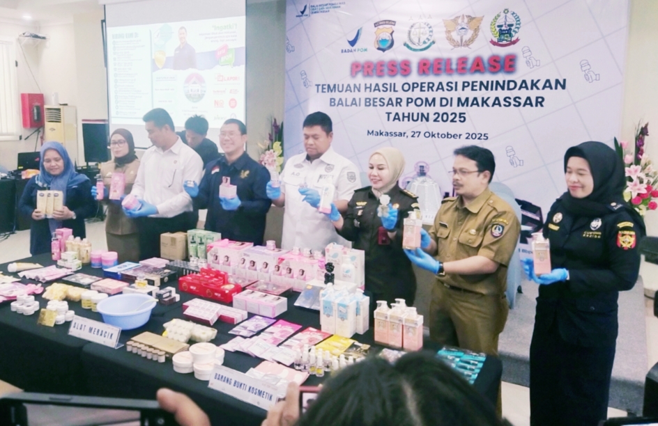 “Nah…pelaku ini menjual kosmetik tanpa izin edar yang mengandung bahan berbahaya seperti merkuri,” ujar Kepala Balai Besar Pengawas Obat dan Makanan (BBPOM) Kakassar, Yosef Dwi Irwan Prakasa Setiawan, Senin 27 Oktober 2025.