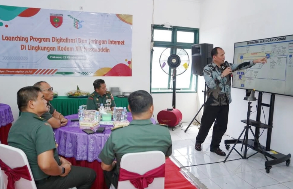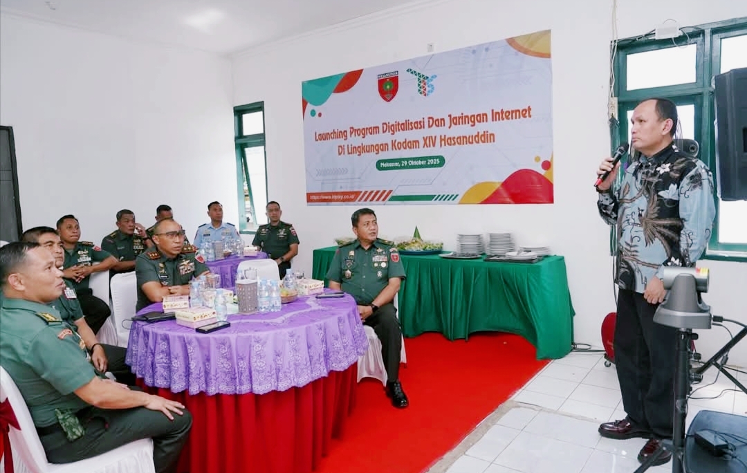 Pangdam XIV/Hasanuddin Mayjen TNI Windiyatno memimpin kegiatan Launching Program Digitalisasi dan Jaringan Internet di Lingkungan Kodam XIV/Hasanuddin, bertempat di Kantor Radio Station (RAS) Makodam, Jl. Urip Sumoharjo Makassar. Rabu (29/10/2025).