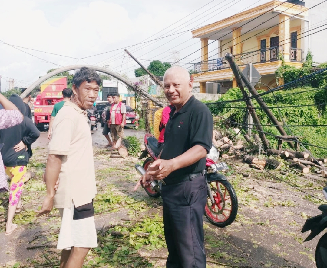 Apesnya, pohon yang berada di poros jalan Jl.Leimena itu menimpa sebuah sepeda motor bernopol DD 6004 US.