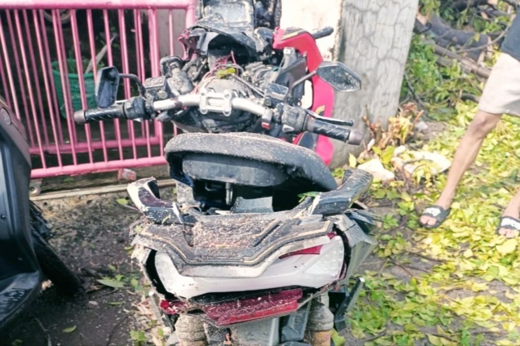 Motor bermerek Honda Matic ADV itu, tampak rusak berat dan hancur terkuliti hampir seluruh body.
