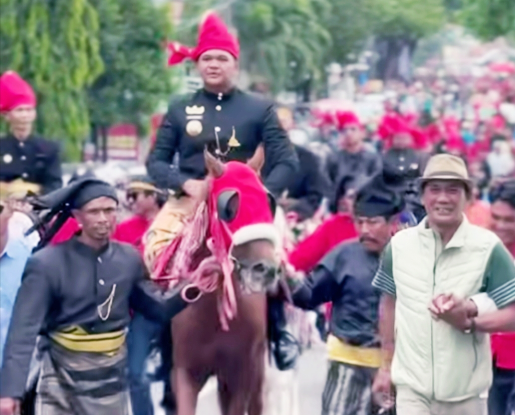 Parade ini dipimpin langsung oleh Bupati Bantaeng, M. Fathul Fauzy Nurdin, yang tampil menunggangi kuda sebagai simbol kekuatan tradisi, selaras dengan tema peringatan tahun ini, “Bangkit Semangat, Deru Tradisi Bantaeng.