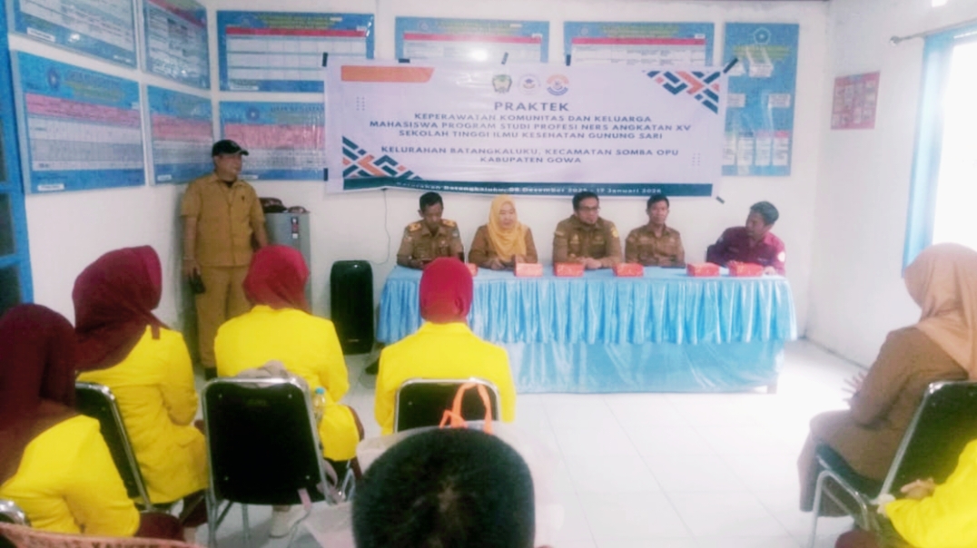 Sekcam Somba Opu Gowa H.Muh Zilfikar Hasanuddin, S.Kom, mewakili Camat, menerima mahasiswa Sekokah Tinggi Ilmu Kesehatan (STIKES) Gunung Sari Makassar yang melaksanakan Kuliah Kerja Profesi (KKP), berlangsung Senin 8 Desember 2025.