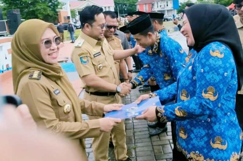Husniah menyampaikan rasa bangga dan apresiasinya kepada seluruh pegawai yang selama ini telah berkontribusi dalam penyelenggaraan pemerintahan dan pelayanan publik.