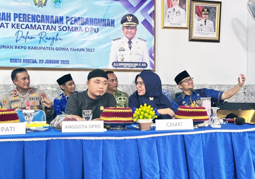 Bupati Gowa diwakili Kepala Dinas PUPR Rusdy Alimuddin menghadiri kegiatan Musyawarah Perencanaan Pembangunan (Musrenbang) Tingkat Kecamatan Somba Opu, berlangsung di Aula Kantor Camat, Jumat 23 Januari 2026.