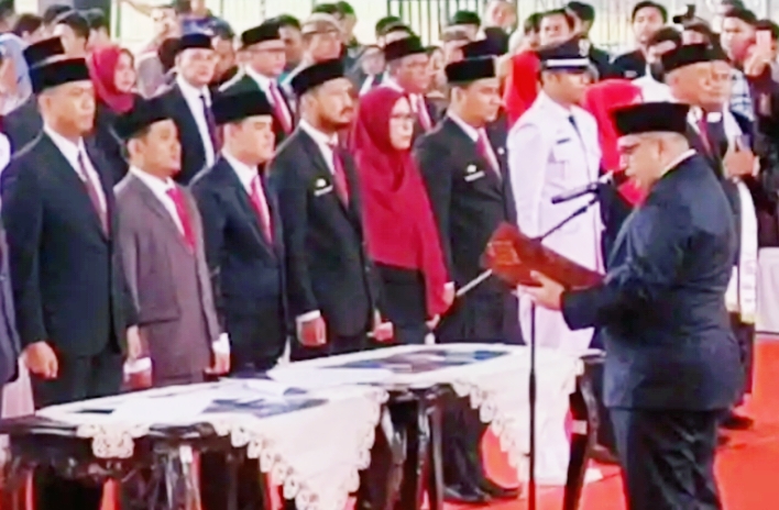 Pengukuhan ratusan pejabat tersebut, mencakup jabatan Camat, Sekretaris Dinas, Kabag, Kabid dan lurah.