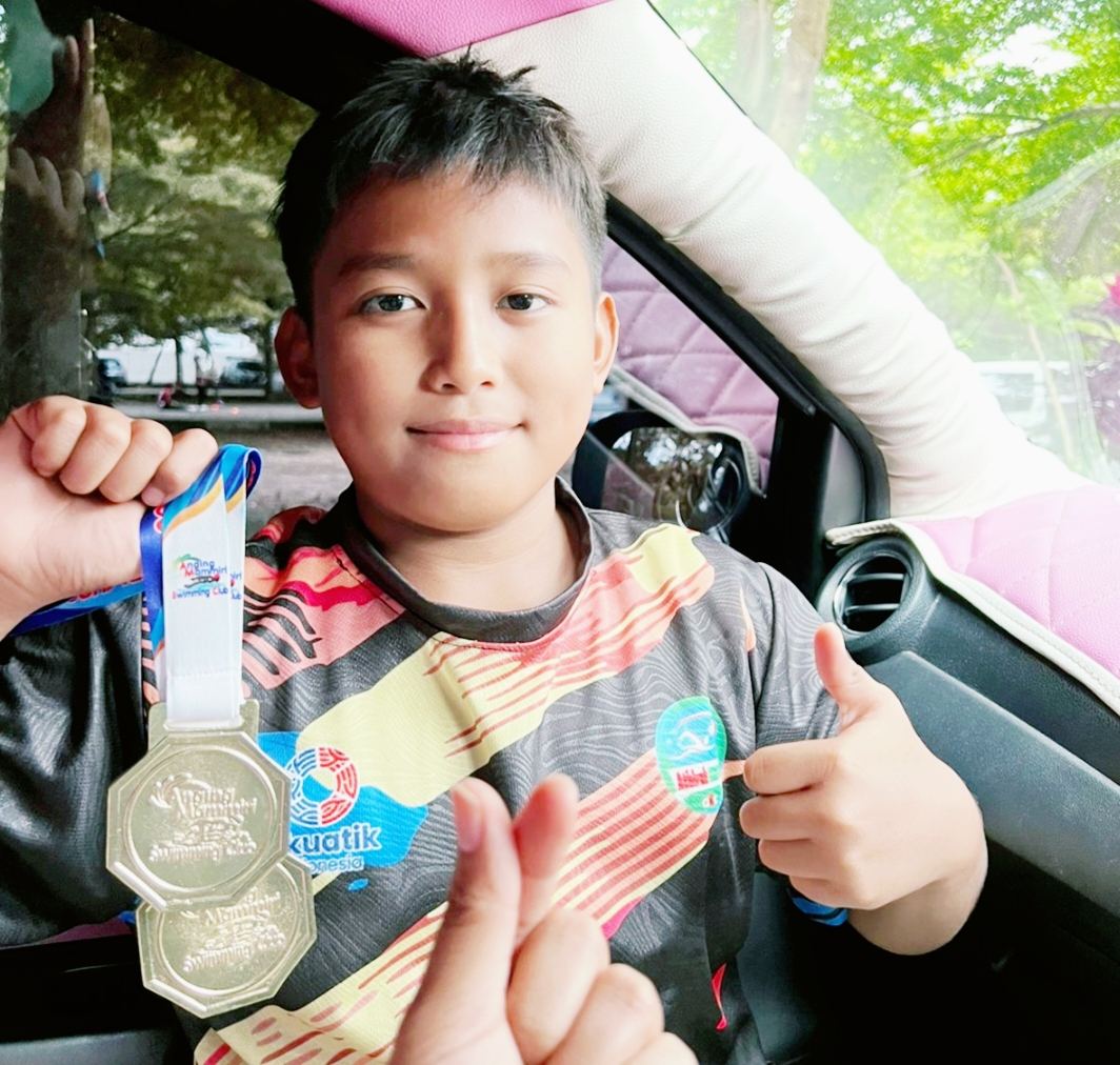 Terakhir, saat mengikuti lomba renang, Sang Bocah ‘Ajaib’ itu kembali menjadi pemenang dengan meraih Juara 1 pada 50 meter gaya dada dan Juara 1 100 meter gaya dada.