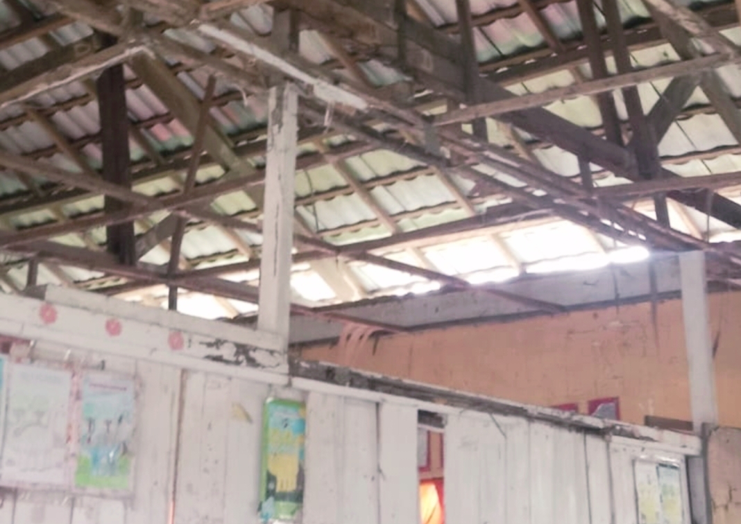 Pasalnya, ruangan siswa atapnya sudah bocor dan plafon sudah roboh.