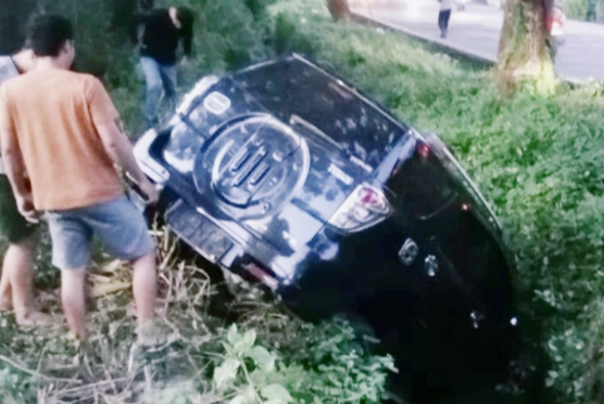 Ngantuk, Mobil Terios Terjuntai Ke Selokan
