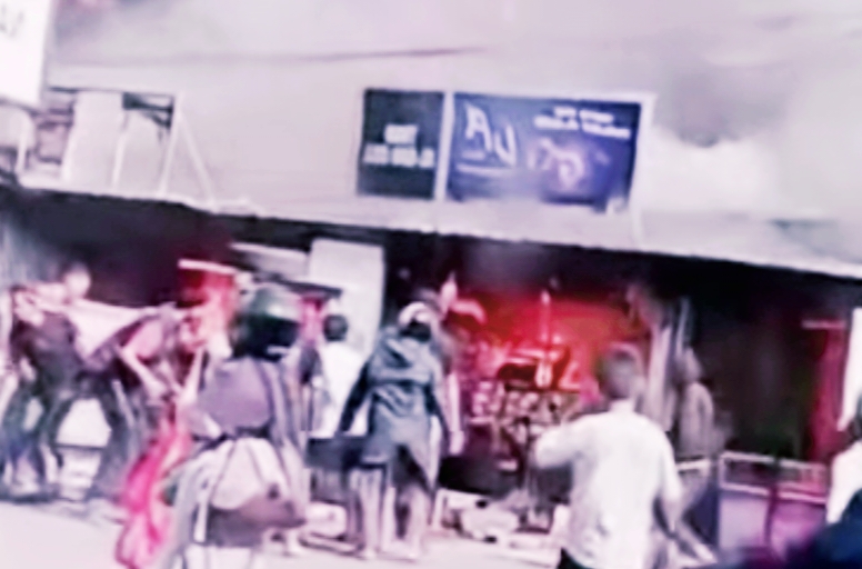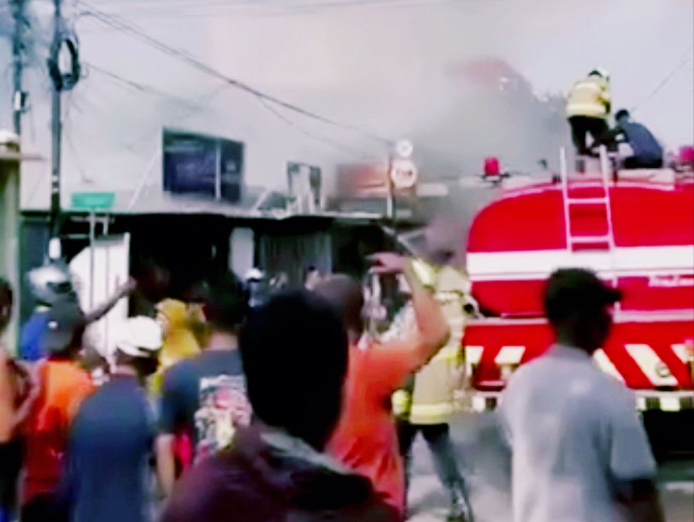 Amuk si jago merah itu, diduga dipicu ledakan akibat kebocoran gas elpiji dari sebuah warung coto dan langsung merembet ke dua toko barang campuran di sekitarnya.